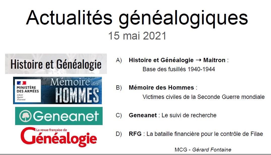 Les exposés concernant le défi "Ecrire la biographie d'un ancêtre" se trouvent sur la page dédiée "Projet ou défi"